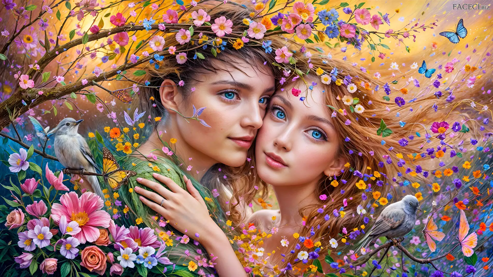 Ptaki, Kwiaty, Motyle, Dziewczyna, 2D, Chłopak, Miłość, Para - faceci.biz
